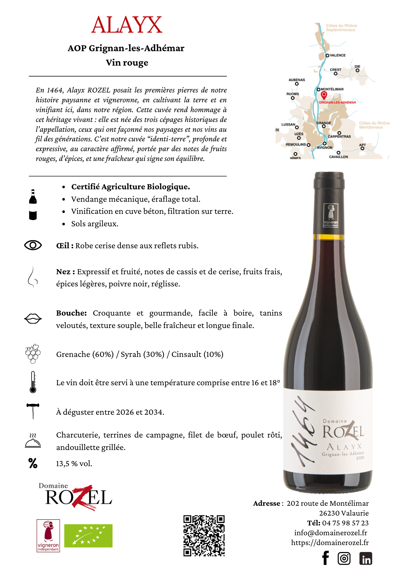 Avec ses arômes de fruits rouges et d’épices, la Cuvée Alayx exprime le caractère et la diversité de nos terroirs, tout en incarnant l’esprit de partage et de convivialité qui nous est cher.